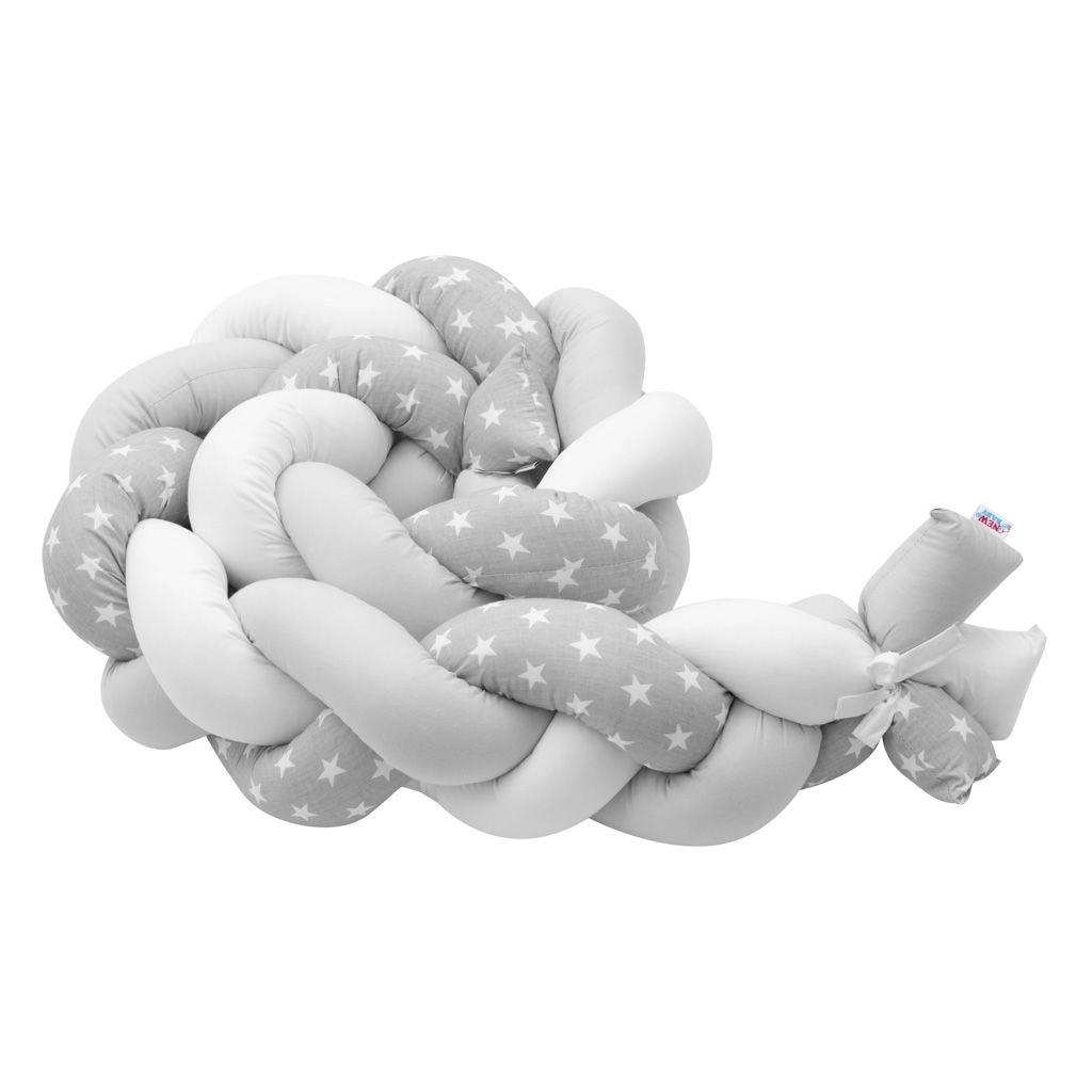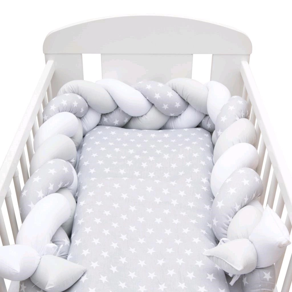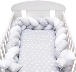 Miękki i praktyczny pleciony warkocz NEW BABY to nowoczesna alternatywa dla tradycyjnych ochraniaczy do dziecięcego łóżeczka. Zapewnia miękką ochronę przed szczebelkami, izolację od zimnej ściany, a jednocześnie stanowi stylową dekorację pokoju dziecięcego. Wykonany z wysokiej jakości 100% bawełny i antyalergicznego włókna, dopasowuje się do każdego łóżeczka i łatwo mocuje za pomocą dołączonych wstążek.