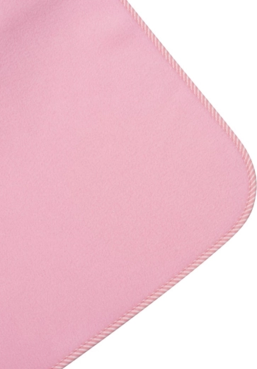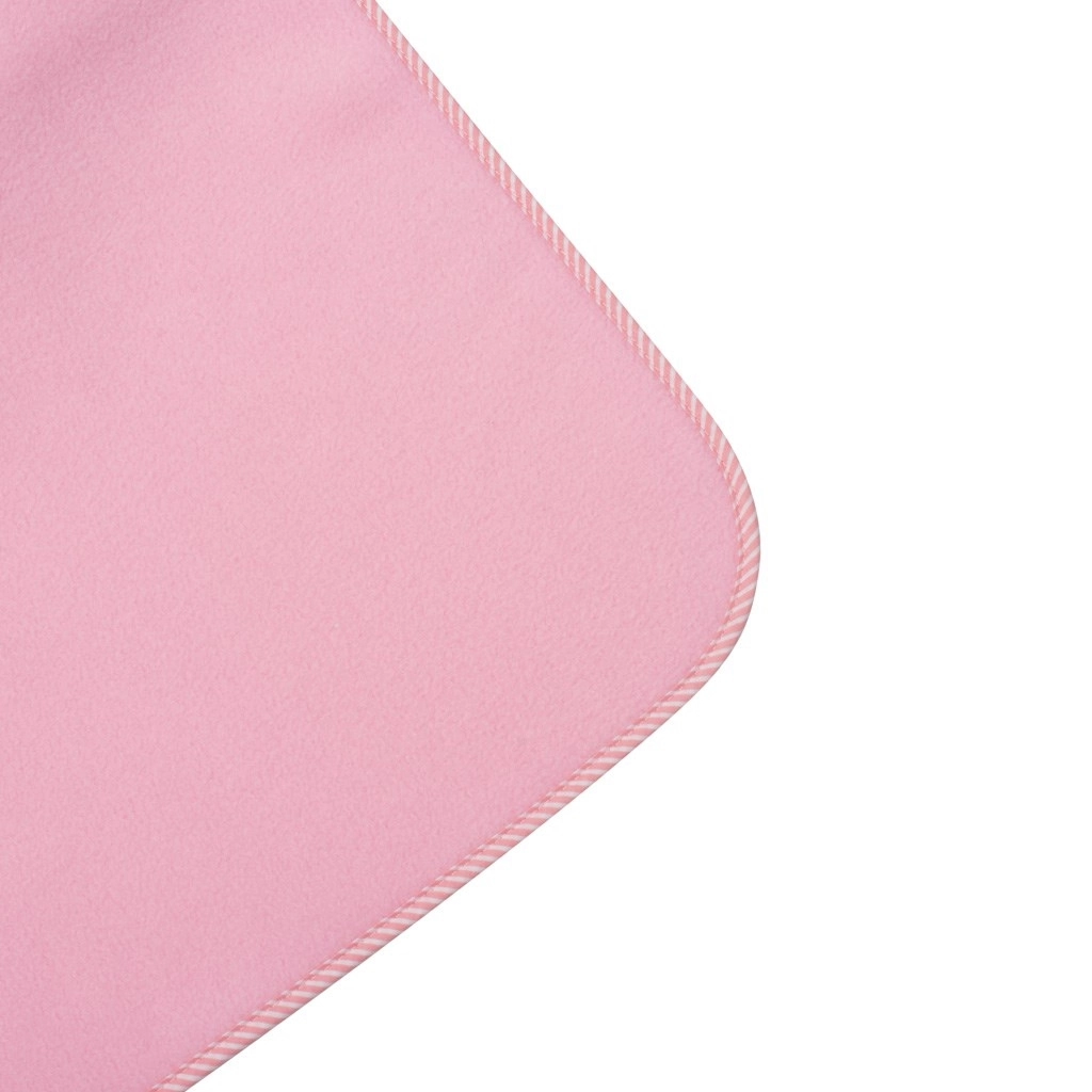 Różowe paski nadają dziecięcej wyprawce delikatny, stylowy wygląd, podkreślając jednocześnie praktyczność tego popularnego kocyka polarowego.