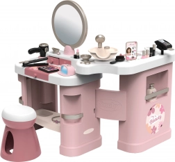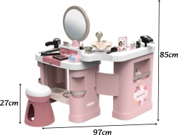 Dziecięce centrum piękności SMOBY BEAUTY to kompletny salon 3w1 dla małych stylistek i stylistów. Dzieci mogą wcielać się w role fryzjerki, wizażystki i manicurzystki, a dzięki bogatemu wyposażeniu odtwarzać prawdziwe czynności. Stabilna konstrukcja, przejrzyste przestrzenie do przechowywania oraz praktyczny stołek (ok. 27 cm) zapewniają wygodną i bezpieczną zabawę.