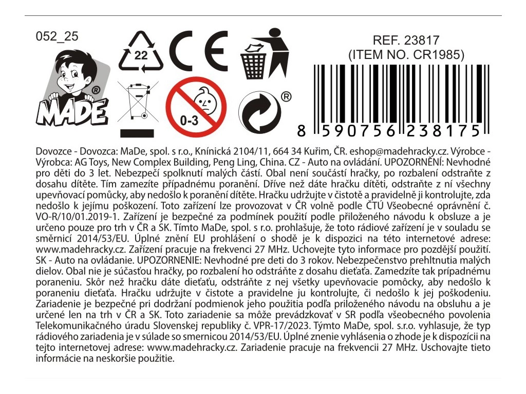 Model wykonano z wysokiej jakości plastiku, jest odporny na codzienne użytkowanie i dostarczany w praktycznym pudełku do łatwego przechowywania lub podarowania. Wystarczy włożyć baterie i zabawa może się zacząć – idealne do domowych wyścigów i popołudniowych przygód z kolegami.