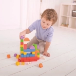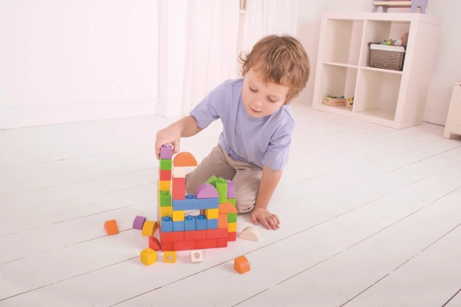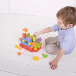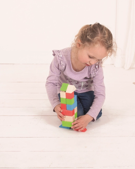 Drewniana układanka Bigjigs Baby oferuje unikalne połączenie drewnianych klocków i plastikowych łączników, które umożliwiają tworzenie solidnych i stabilnych konstrukcji. Klocki w różnych kształtach i kolorach są idealne dla dziecięcych rączek.