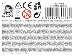 Zabawka jest wykonana z wysokiej jakości plastiku, a dzięki prostemu sterowaniu nadaje się już od 3 roku życia. Zasilanie zapewniają 2 baterie typu AAA (brak w zestawie), więc dzieci mogą cieszyć się kreatywną zabawą w dowolnym miejscu.