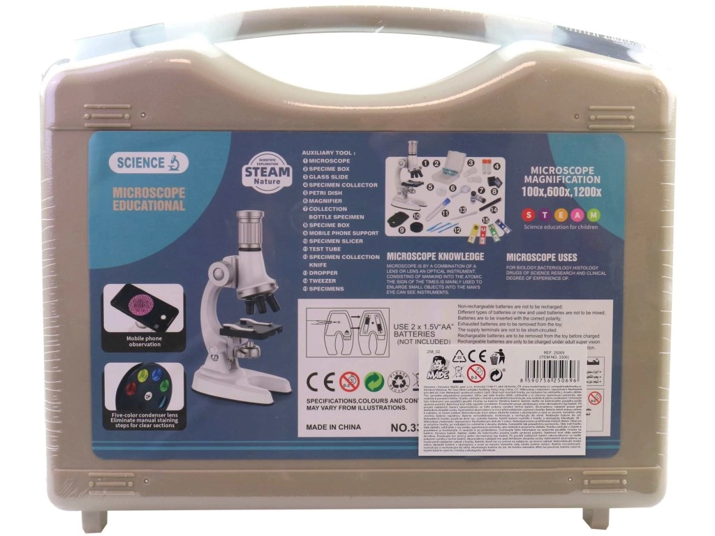 Ten dziecięcy mikroskop został zaprojektowany do pierwszych doświadczeń i poznawania mikrokosmosu. Dzięki wytrzymałej plastikowej obudowie i prostemu sterowaniu nadaje się do eksperymentów szkolnych i domowych. Praktyczne pudełko ułatwia przechowywanie i przenoszenie.