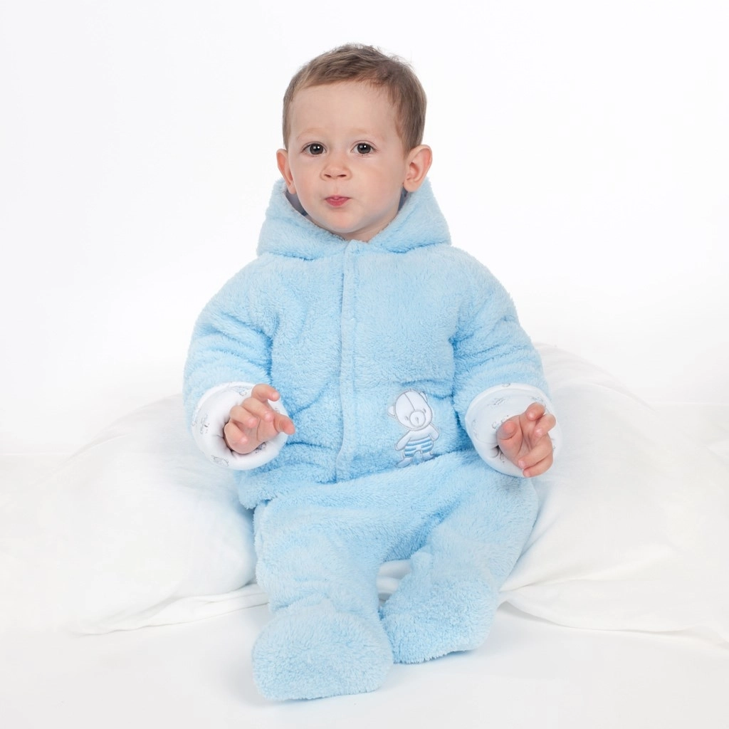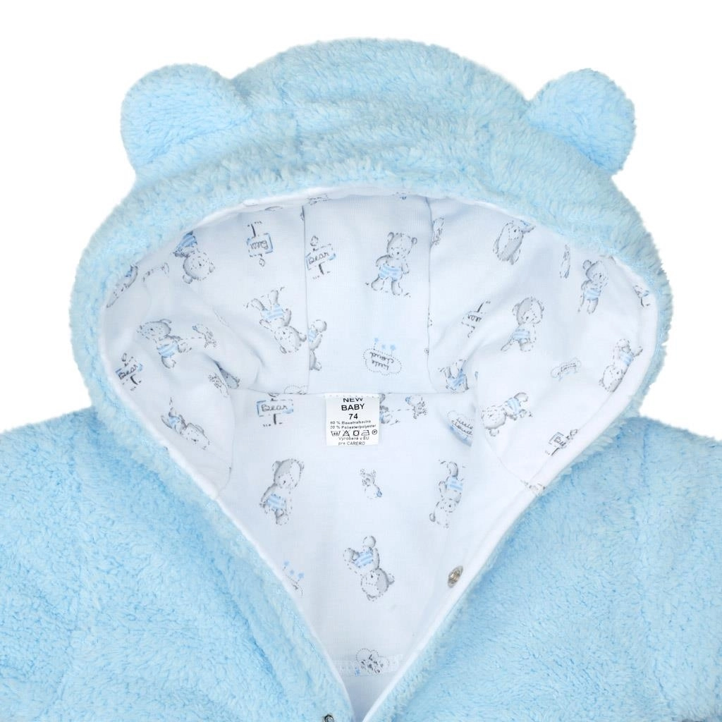 Zapewnij swojemu maluszkowi ciepło i wygodę w zimowych miesiącach dzięki kombinezonowi New Baby Nice Bear. Wierzchnia warstwa z ciepłego polaru oraz miękka bawełniana podszewka utrzymują stałą temperaturę, a praktyczne zapinanie na napy na całej długości, także między nóżkami, ułatwia ubieranie i przewijanie.