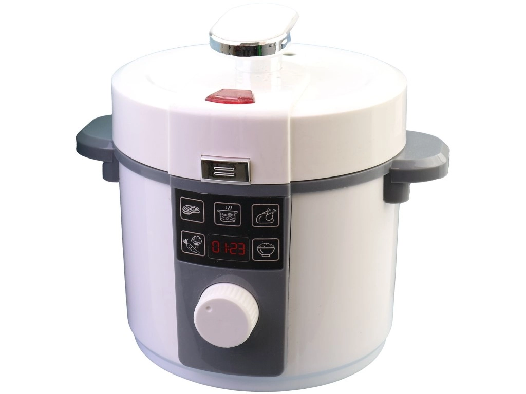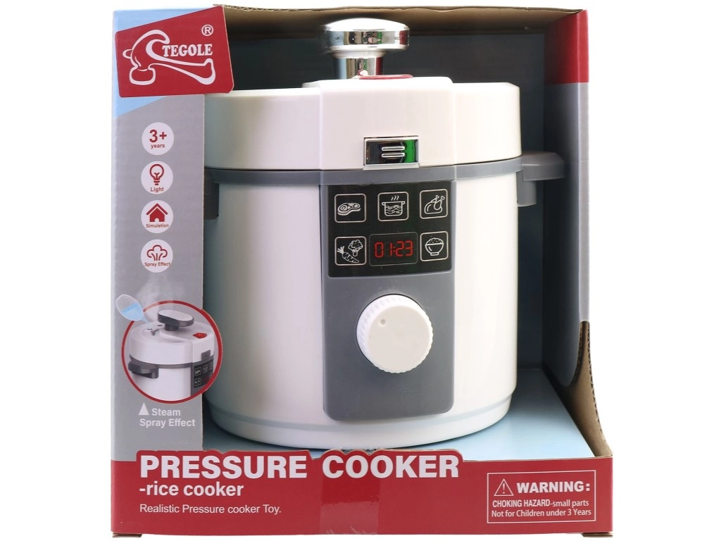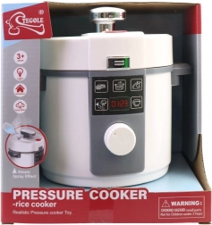 Dziecięcy szybkowar – ryżowar na baterie o średnicy 18 cm, wykonany z wysokiej jakości plastiku, oferuje realistyczne dźwięki i efekty świetlne (po włożeniu baterii) i wspiera kreatywną zabawę w gotowanie. Odpowiedni dla dzieci od 3 lat, dostarczany w prezentowym opakowaniu typu window box.