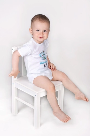 Praktyczne zapięcie na napy na ramieniu i w kroku ułatwia ubieranie oraz przewijanie. Dzięki wygodnemu krojowi body idealnie sprawdzi się na co dzień, do zdjęć i na urodzinowe przyjęcia.