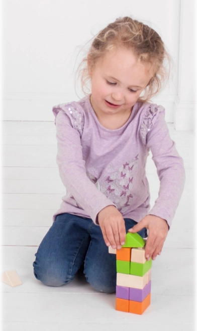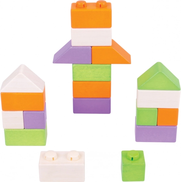 Ekologiczna kolorystyka klocków i plastikowe „kapelusiki” są nie tylko estetyczne, ale także bezpieczne dla dzieci.