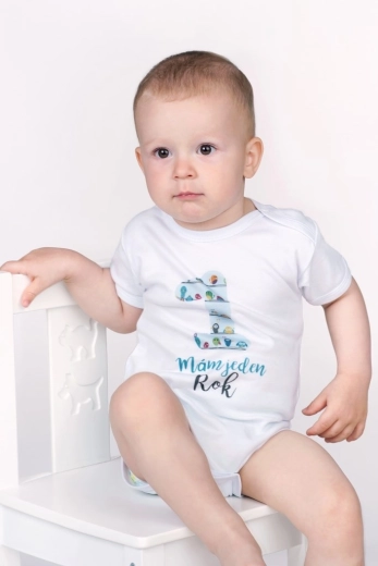 Stylowe bawełniane body z długim rękawem marki New Baby z wesołym napisem Mam już 1 rok i nadrukiem dużej jedynki z balonikami. Wykonane ze 100% bawełny dla maksymalnego komfortu, z certyfikowanymi barwnikami przyjaznymi dla skóry dziecka oraz praktycznym zapięciem na napy na ramieniu i w kroku.