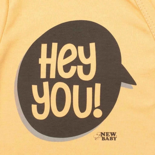 Kontrastowe szare lamówki wokół szyi i rękawów nadają koszulce schludny wygląd, a radosny napis Hey You! ucieszy zarówno dzieci, jak i rodziców. Idealna do codziennego noszenia w domu i na spacer.