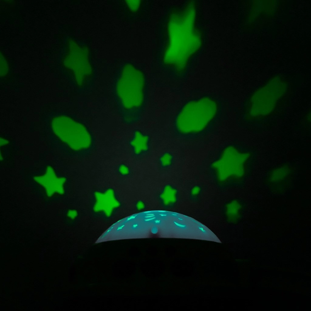 - świetlny projektor z projekcją rozgwieżdżonego nieba (działa także jako lampka nocna)