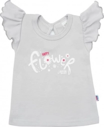 Ten delikatny komplet dla noworodka łączy styl i wygodę na co dzień. Koszulka z praktycznym zapięciem na napę przy szyi z tyłu ułatwia ubieranie, a subtelne falbankowe rękawki dodają uroku. Spodenki z szerszym elastycznym pasem dobrze trzymają się, nie uciskają i dzięki zwężanym nogawkom z lamówką wygodnie leżą.