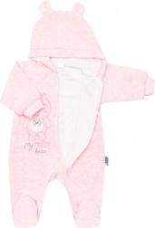 Dziecięcy zamszowy kombinezon z kapturem New Baby Sweetheart w delikatnym różowym kolorze jest idealny na chłodniejsze dni i do domowego relaksu. Uroczy nadruk misia ucieszy zarówno rodziców, jak i maluszki, a całkowita podszewka zwiększa komfort noszenia.