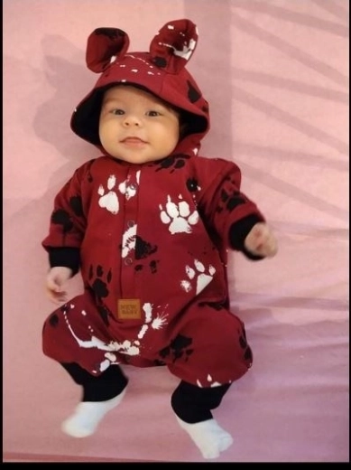 Uroczy i wygodny dziecięcy rampers NEW BABY Paw do codziennego noszenia. Wykonany z wysokiej jakości bawełny z domieszką elastanu, ma miłą bawełnianą podszewkę oraz zapięcie na napy na całej długości, co ułatwia ubieranie i przewijanie. Kaptur z uszkami, szersze elastyczne ściągacze i ocieplane wnętrze zapewniają ciepło i komfort. Idealny na wiosnę i jesień.