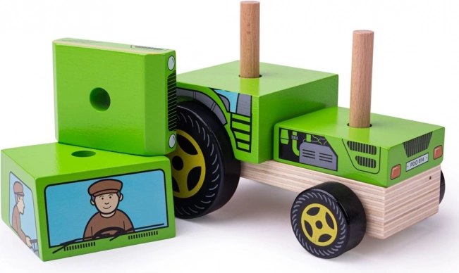 Ten drewniany traktor BIGJIGS łączy układankę z pojazdem do zabawy. Zanim wyruszy na „pole”, dzieci muszą prawidłowo nałożyć i ułożyć elementy na bolcach, co w przystępny sposób rozwija logikę i cierpliwość. Dzięki ruchomym kółkom jest gotów do jazdy po dziecięcym pokoju.