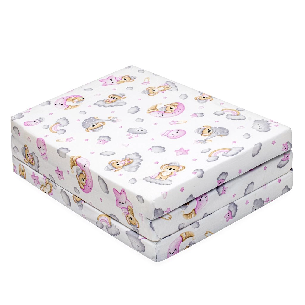 Dzięki składanej konstrukcji łatwo go przechowasz lub zabierzesz ze sobą. Uniwersalny wymiar 120 × 60 cm pasuje do większości standardowych i turystycznych łóżeczek. Certyfikat OEKO-TEX Standard 100 potwierdza bezpieczeństwo materiałów odpowiednich dla dzieci.