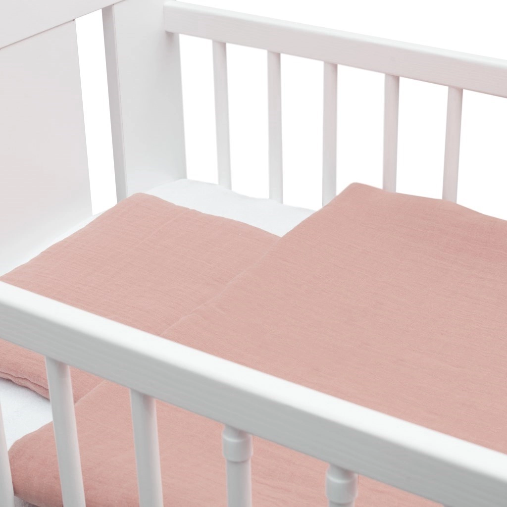 Ten różowy muślinowy zestaw zapewnia dziecku wygodę, a rodzicom spokój. Muślin należy do najczystszych i najdelikatniejszych tkanin – jego lekka i przewiewna struktura umożliwia cyrkulację powietrza i zmniejsza ryzyko przegrzania. Dzięki wysokiej jakości wypełnieniu z antyalergicznych włókien zestaw jest bezpieczny i odpowiedni także dla wrażliwych dzieci.