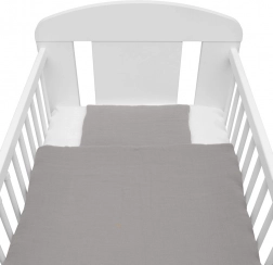 Muślin to jedna z najdelikatniejszych i najbardziej oddychających tkanin. Lekka struktura pozwala materiałowi „oddychać”, wspiera cyrkulację powietrza i zmniejsza ryzyko przegrzania. Zestaw jest wyjątkowo miękki dla dziecięcej skóry, a dzięki wysokiej jakości wykonania dobrze znosi wielokrotne pranie, z czasem stając się jeszcze bardziej miękki.