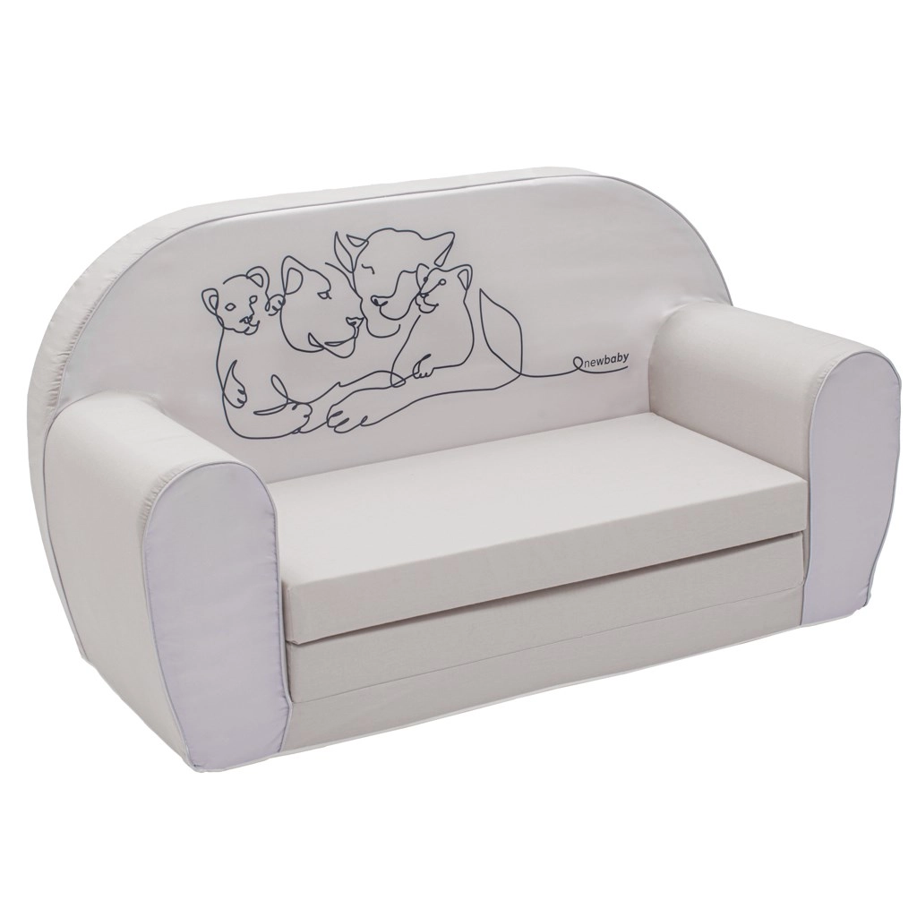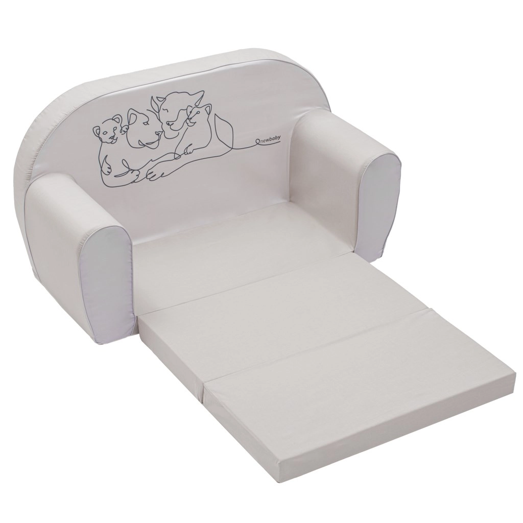 Stylowa dziecięca rozkładana sofa New Baby jest idealna do każdego pokoju dziecięcego. Wykonana z miękkiej i lekkiej pianki poliuretanowej, ma zdejmowany bawełniany pokrowiec na zamek i zapewnia bezpieczne i wygodne siedzenie bez twardych elementów. Przyjemny jasnoszary design z motywem dinozaura świetnie współgra z wystrojem dziecięcego pokoju i zachęca do odpoczynku oraz zabawy.