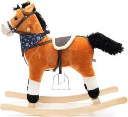 Koń na biegunach BABY MIX Blesk został zaprojektowany tak, aby zapewnić dzieciom radość z bezpiecznego bujania oraz wspierać rozwój motoryki. Realistyczne wykonanie z chustką na szyi, metalowymi strzemionami, solidnymi drewnianymi uchwytami i stabilnymi płozami zwiększa stabilność i komfort podczas jazdy. Po naciśnięciu przycisków na uszach konik merda ogonem, porusza pyszczkiem, wydaje odgłosy galopu, rży i odtwarza kowbojską melodię.