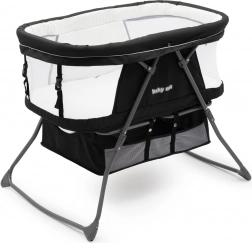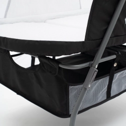 Składana metalowa konstrukcja jest mocna i stabilna, a jednocześnie lekka, co ułatwia przenoszenie. Praktyczny dolny kosz pomieści pieluchy, zabawki i drobiazgi, a torba transportowa ułatwia przewożenie i przechowywanie. Kołyska to świetny wybór dla rodziców szukających bezpiecznego, stylowego i łatwo przenośnego rozwiązania.
