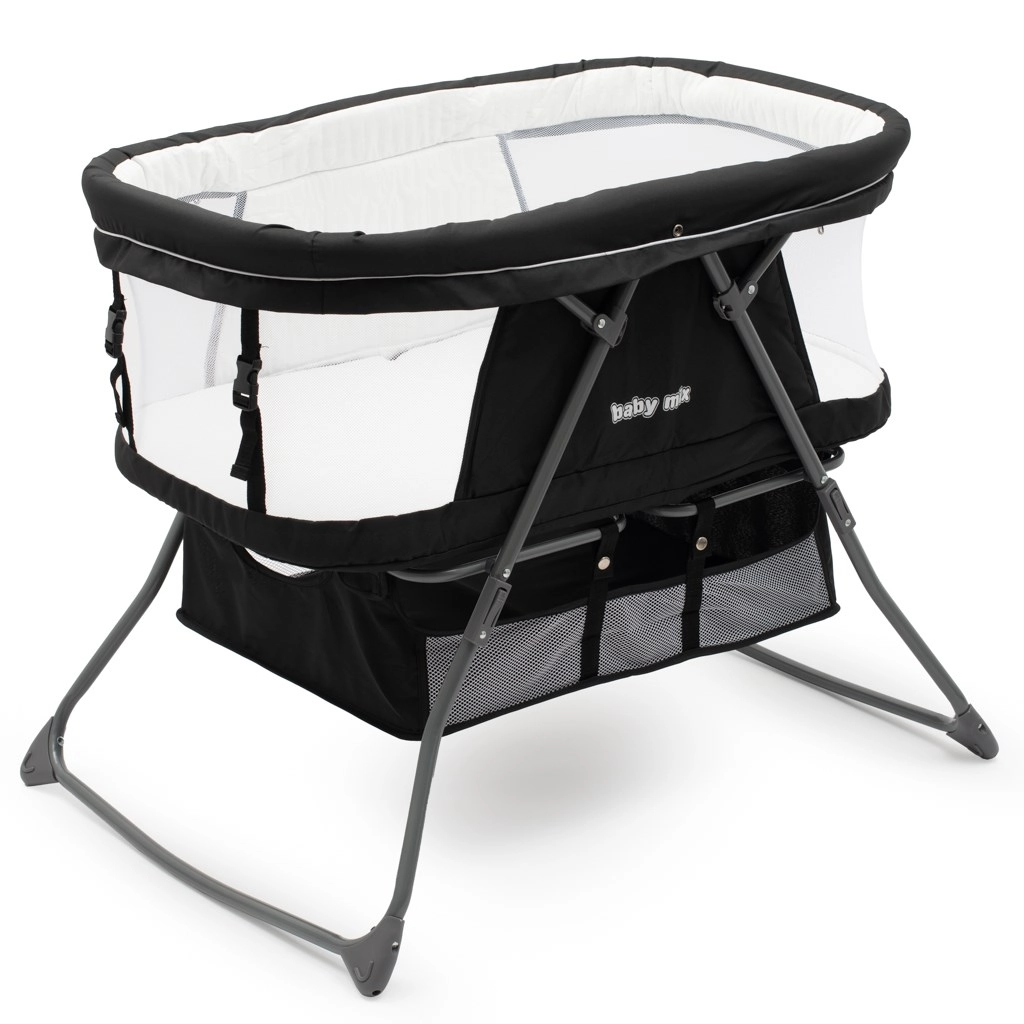 Kołyska BABY MIX DreamyNest łączy nowoczesny design z przemyślaną funkcjonalnością. Dzięki możliwości delikatnego kołysania łatwo uspokaja dziecko, a oddychające siateczkowe boki zapewniają lepszą cyrkulację powietrza i podgląd maluszka. Zintegrowana siatka przeciw owadom chroni przed komarami i innymi insektami, dzięki czemu sen jest niezakłócony w domu i na zewnątrz.