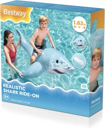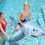 Rekin z detalicznym nadrukiem, płetwami i ogonem wyróżni się w każdym basenie. Rozmiar 183 × 102 cm zapewnia wygodę i stabilność podczas pływania.
