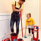 Wiadro z wyciskaczem, mop, szczotka, zmiotka i szufelka – wszystko w wytrzymałym wykonaniu i designie VILEDA, by jak najwierniej odtwarzać role.