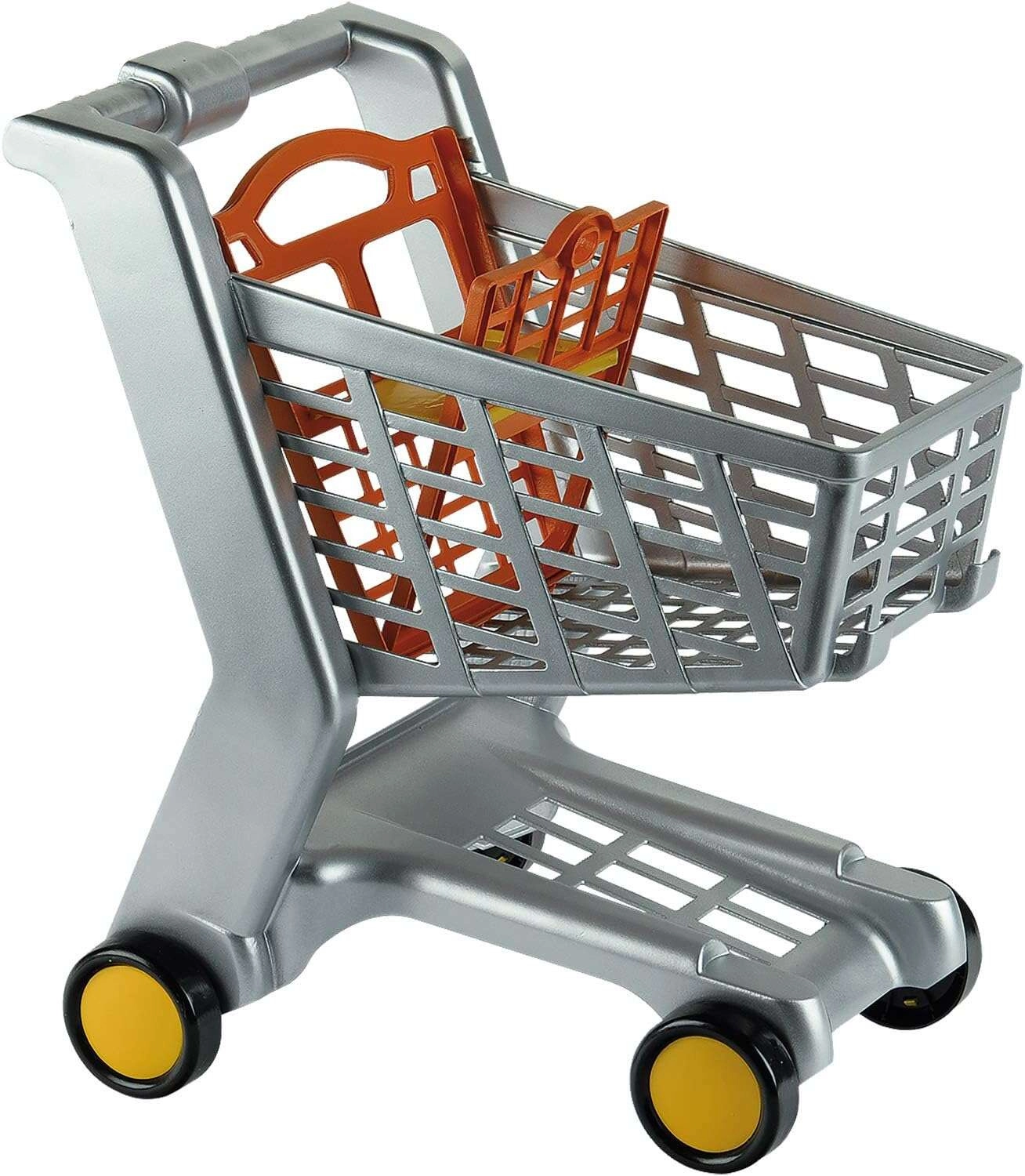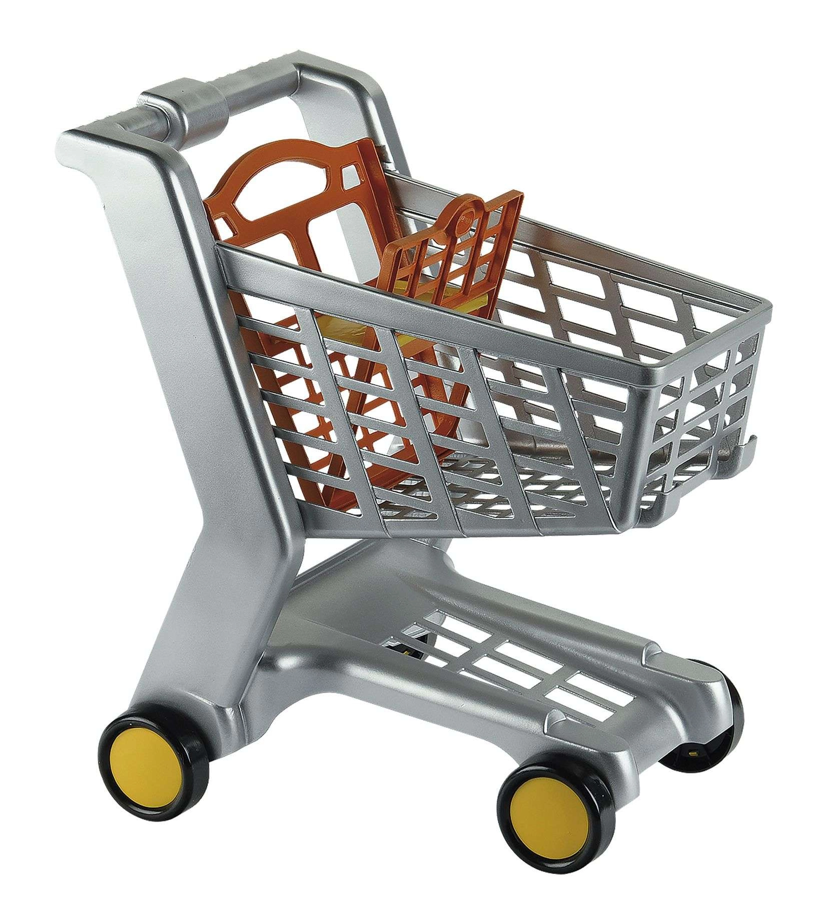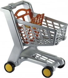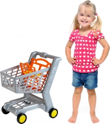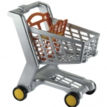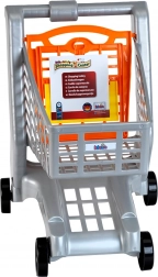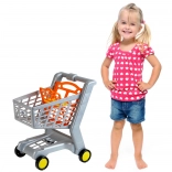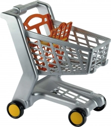 Otwarty kosz, uchwyt i cztery kółka naśladują prawdziwy wózek z supermarketu – dzieci będą się bawić w autentyczne zakupy.