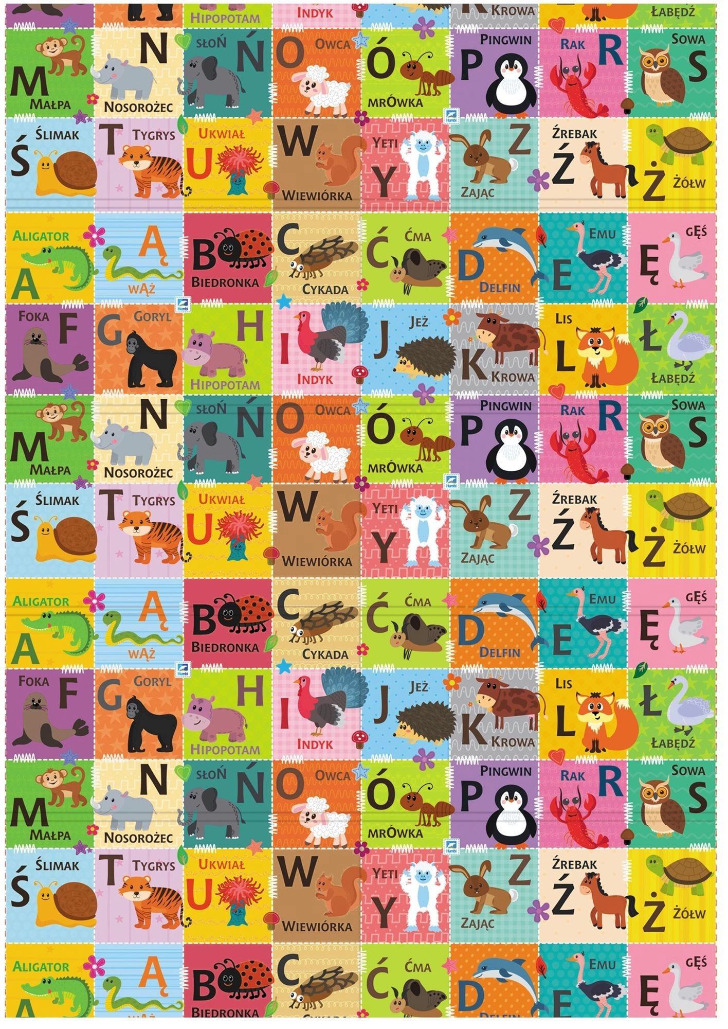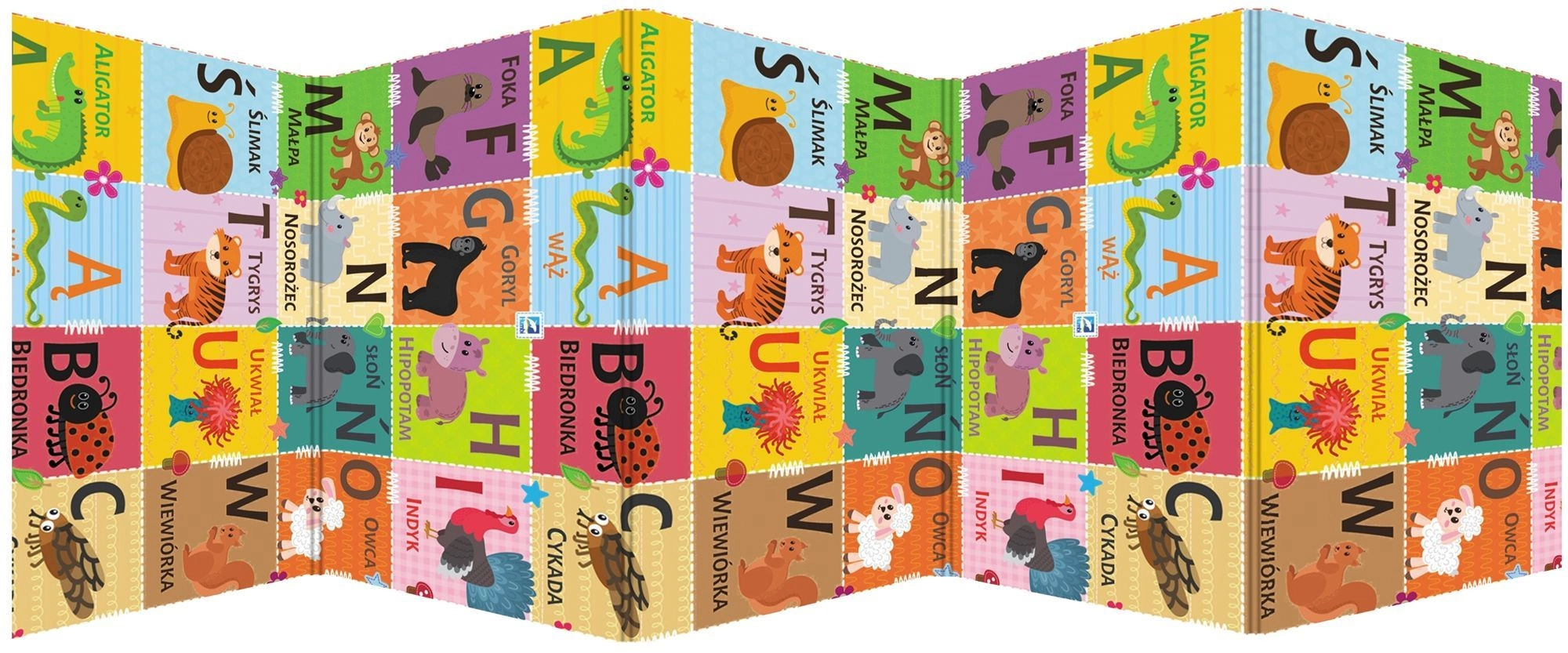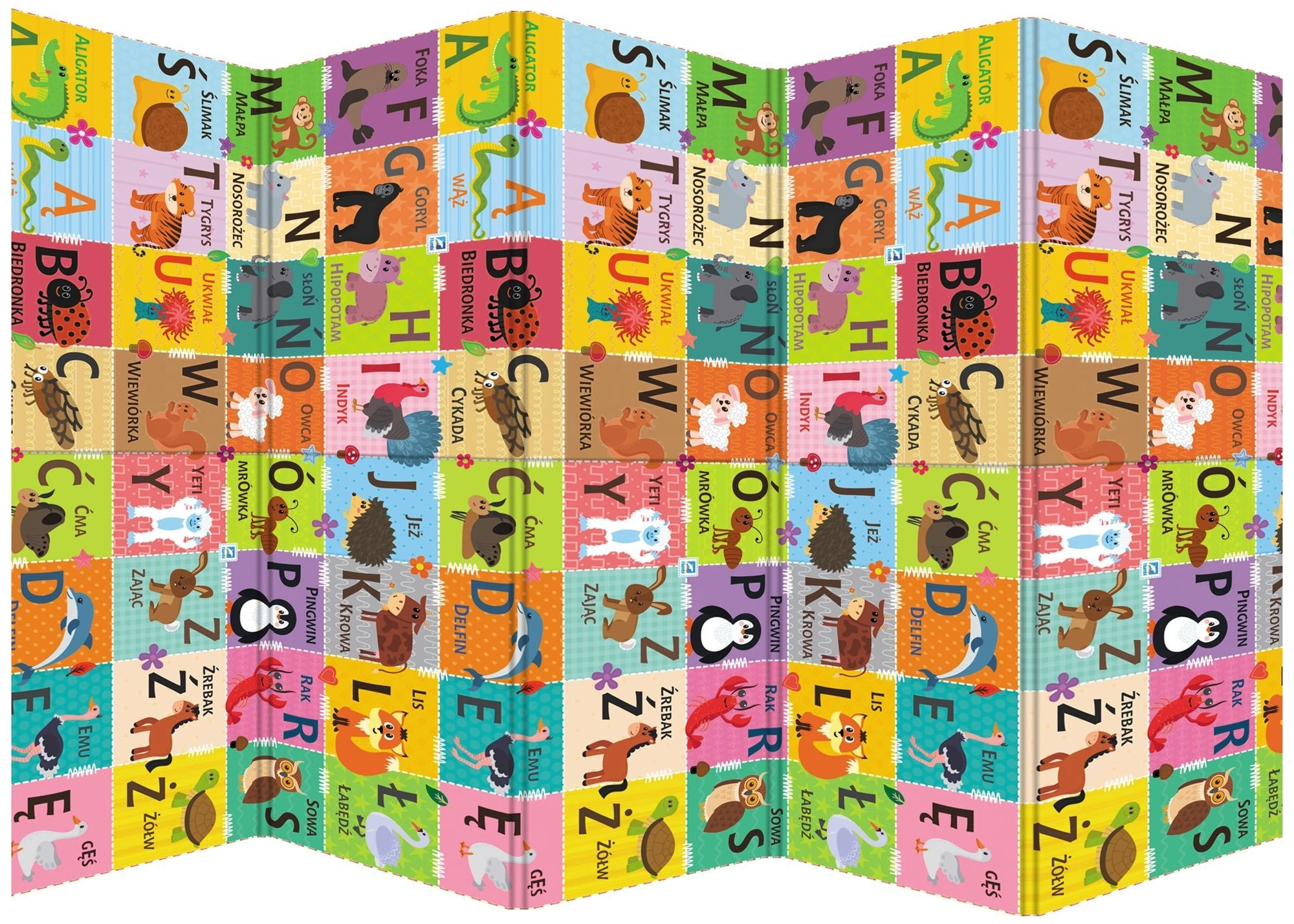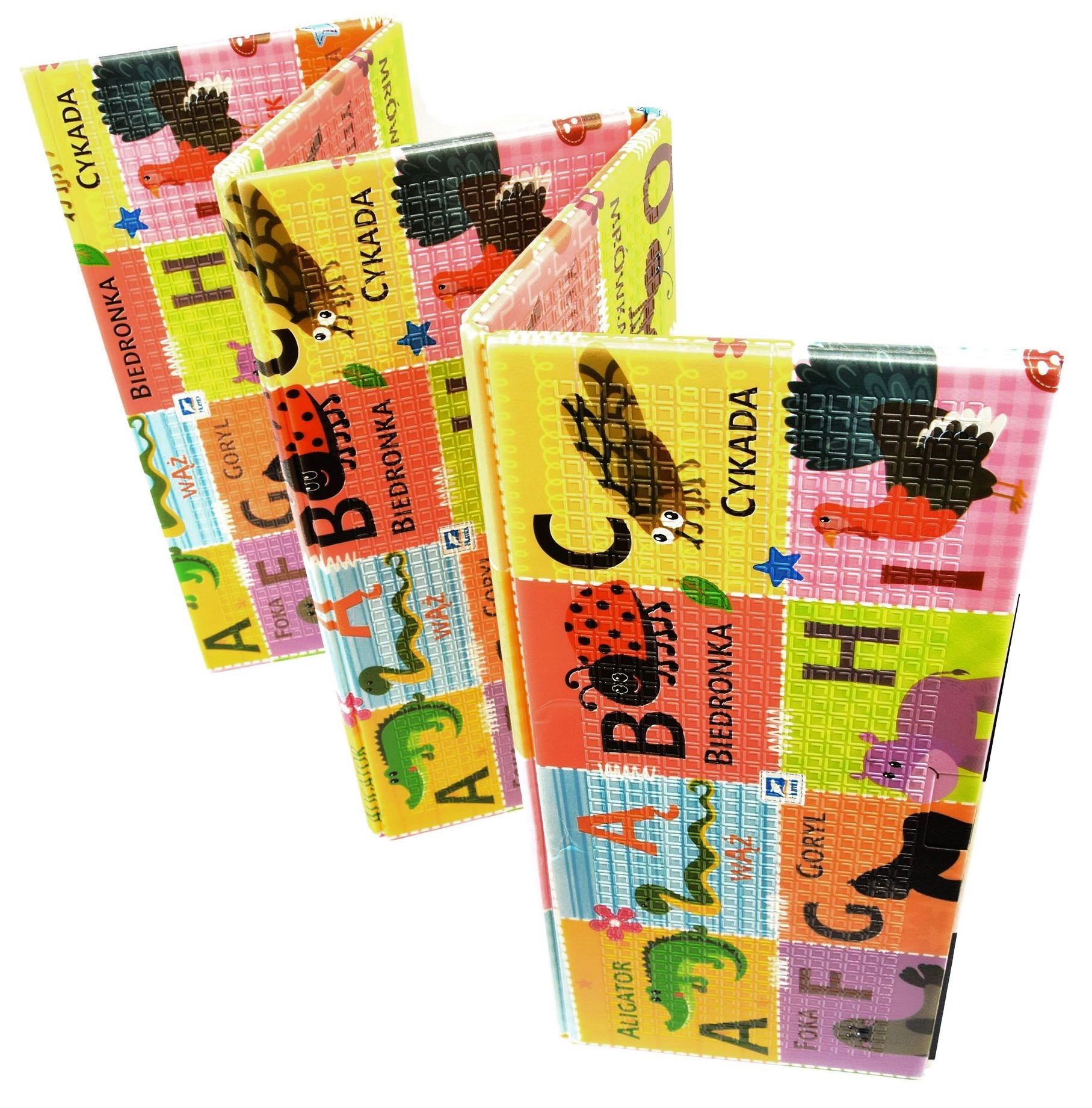 - Dwustronny design: kontrastowe liczby i symbole + kolorowy alfabet ze zwierzątkami