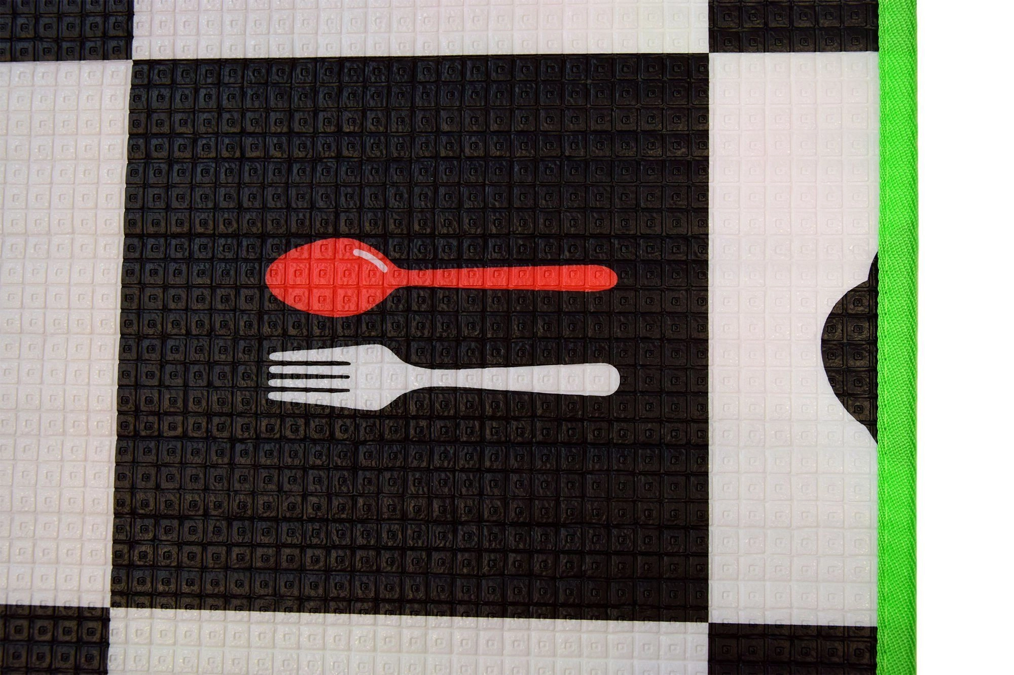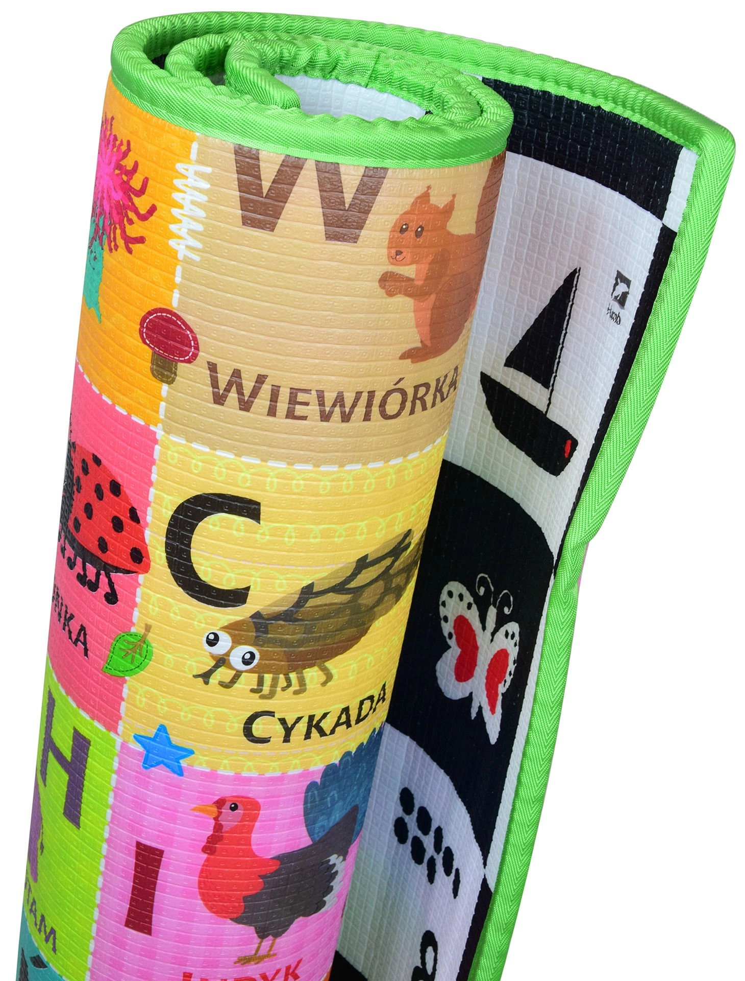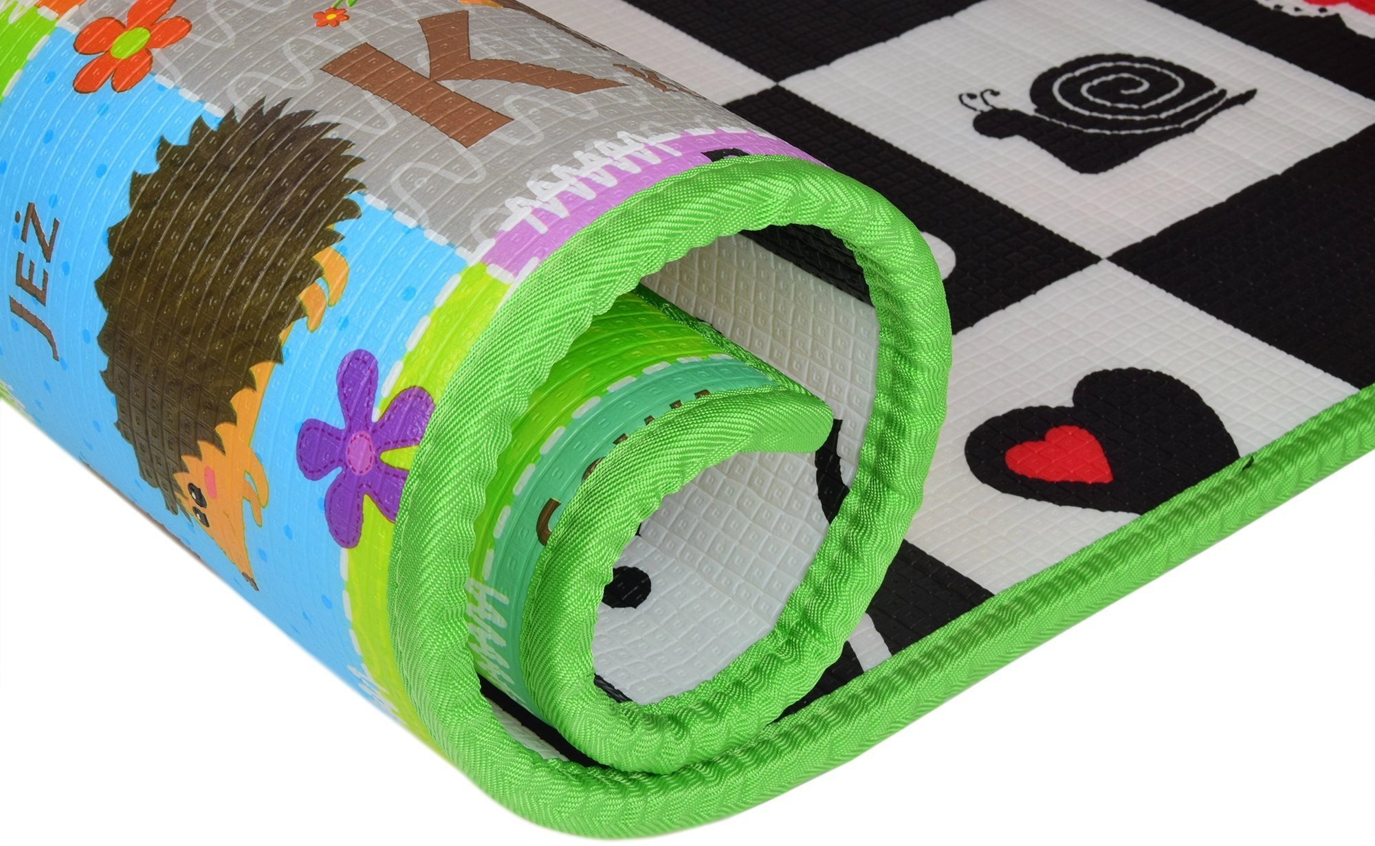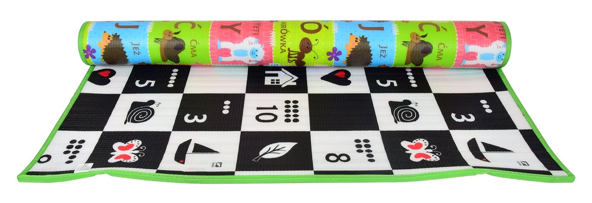Mata wykonana jest z bezpiecznej, nietoksycznej i bezzapachowej pianki EPE, nie zawiera formamidu, ftalanów, PVC ani BPA i spełnia normy EN71-1, EN71-2, EN71-3 oraz REACH. Jest wodoodporna, łatwa w utrzymaniu, a dzięki delikatnej fakturze powierzchni również antypoślizgowa. Szybkie zwijanie ułatwia przenoszenie – torba na zamek znajduje się w zestawie.