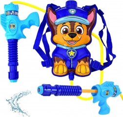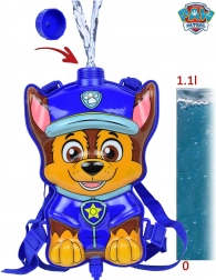 Zabawny plecak wodny z postacią Chase z serii Psi Patrol na nieskończoną letnią zabawę. Plecak ma regulowane szelki, zamykany otwór do napełniania i jest połączony wężykiem z ręcznym pistoletem wodnym z pompką. Idealny do ogrodu, nad wodę i na plac zabaw.
