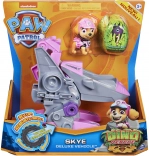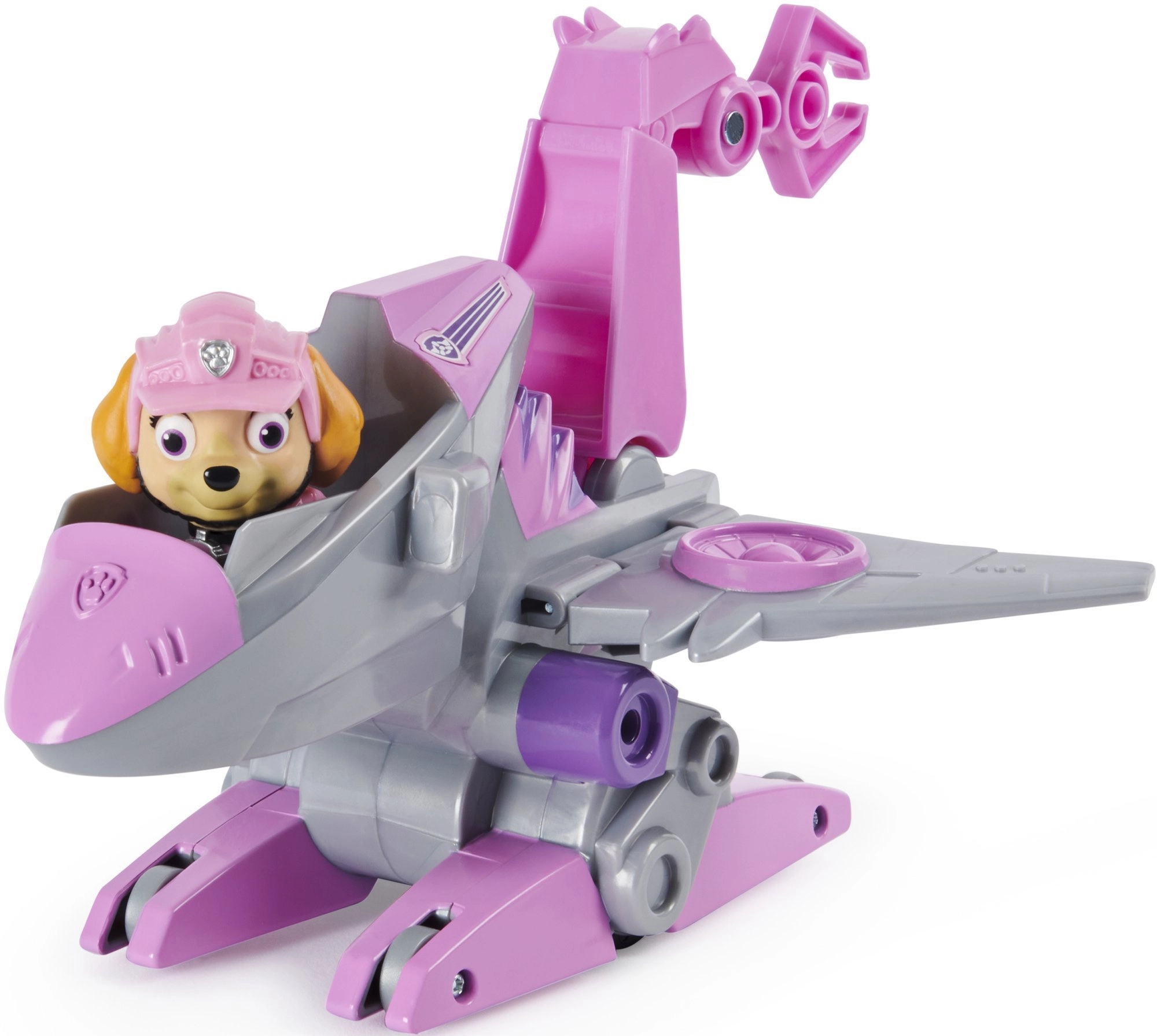 Figurka Skye jest dopracowana w detalach, nosi różową czapkę i jetpack, ma ruchome części ułatwiające ustawianie i zabawę. Pojazd jest przystosowany do figurki, dzięki czemu dzieci mogą od razu wyruszyć na dino misje ratunkowe.