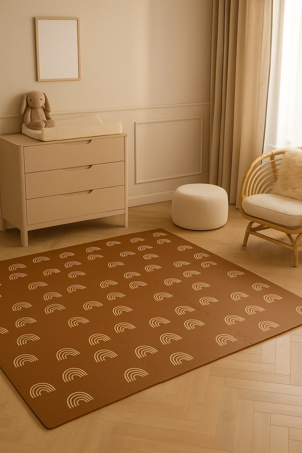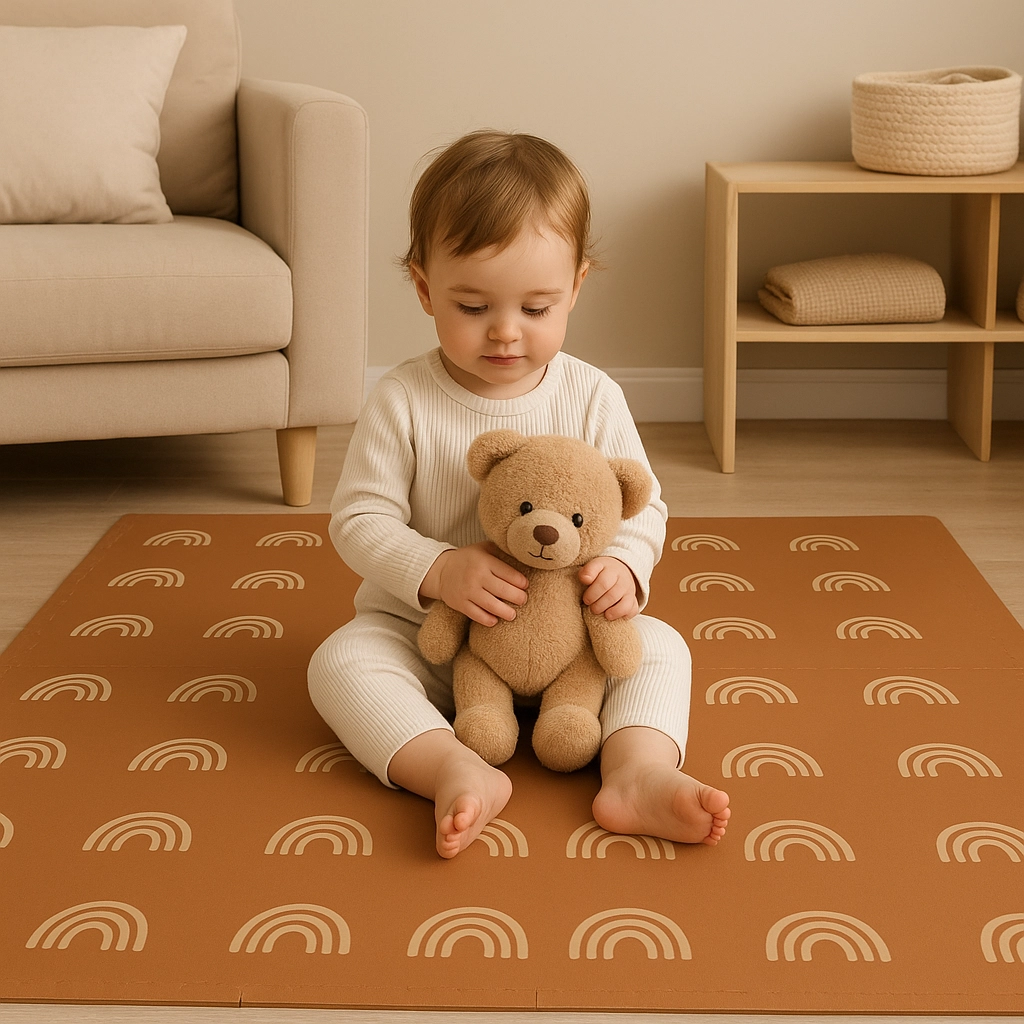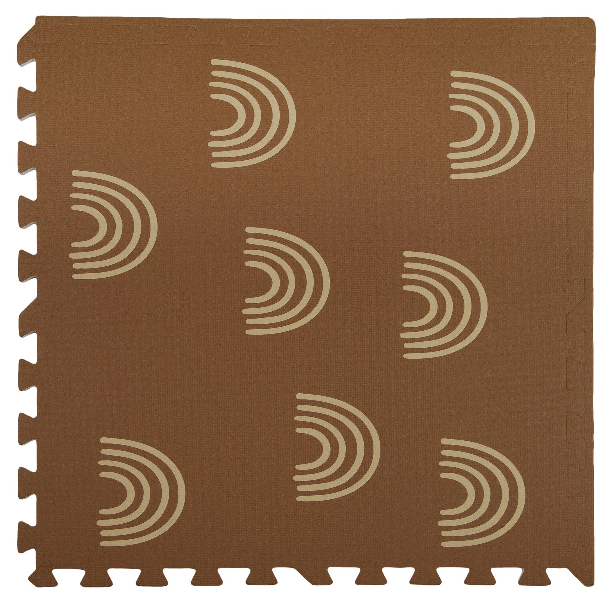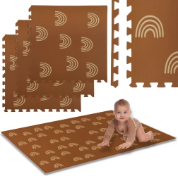 Stwórz dla dzieci przytulny i bezpieczny kącik do zabawy, raczkowania i pierwszych kroków. Mata z elastycznej pianki EVA jest higieniczna, łatwa w czyszczeniu (wystarczy przetrzeć wilgotną ściereczką) i dzięki grubości 1 cm znakomicie izoluje od zimnej podłogi. Stonowana brązowa kolorystyka z kremowymi łukami pasuje do każdego wnętrza.