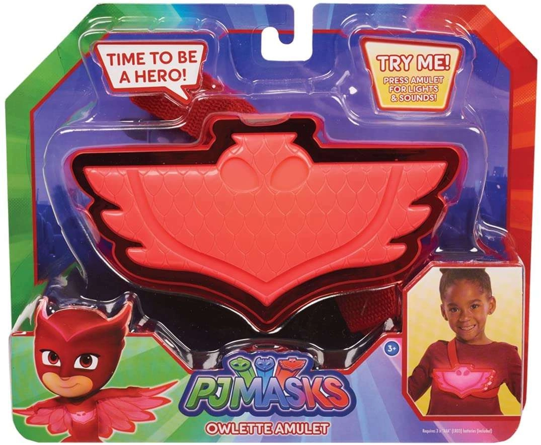 - Autentyczny design PJ Masks: ikoniczny czerwony amulet bohaterki SOWELLA.