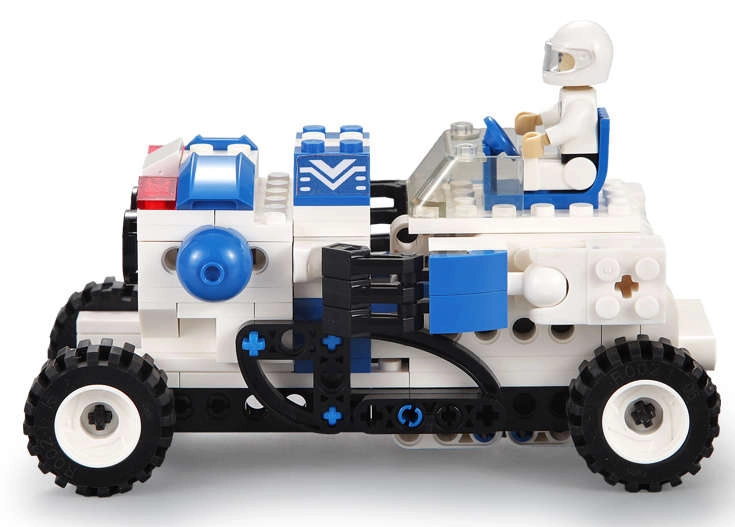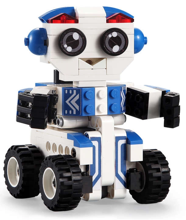 Z jednego zestawu zbudujesz albo przyjaznego robota z wyrazistymi oczami, albo kompaktowego łazika. Łatwe przebudowy wspierają kreatywność i dłuższą zabawę.