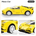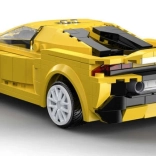 Niska, aerodynamiczna sylwetka, żółta karoseria z czarnymi elementami oraz gumowe koła dla płynnej jazdy po różnych nawierzchniach.