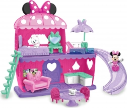 W zestawie są 2 figurki (wysokość ok. 7,5 cm) oraz bogate akcesoria, w tym meble. Dzieci mogą zjeżdżać figurkami po zjeżdżalni, wspinać się po schodkach i wciąż na nowo aranżować wnętrze. Idealny prezent dla dzieci od 3 lat, a także świetne uzupełnienie kolekcji z motywem Minnie.