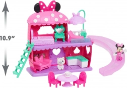 W zestawie znajdują się 2 figurki (ok. 7,5 cm) oraz wiele mebli i akcesoriów do nieskończonych opowieści z MINNIE.