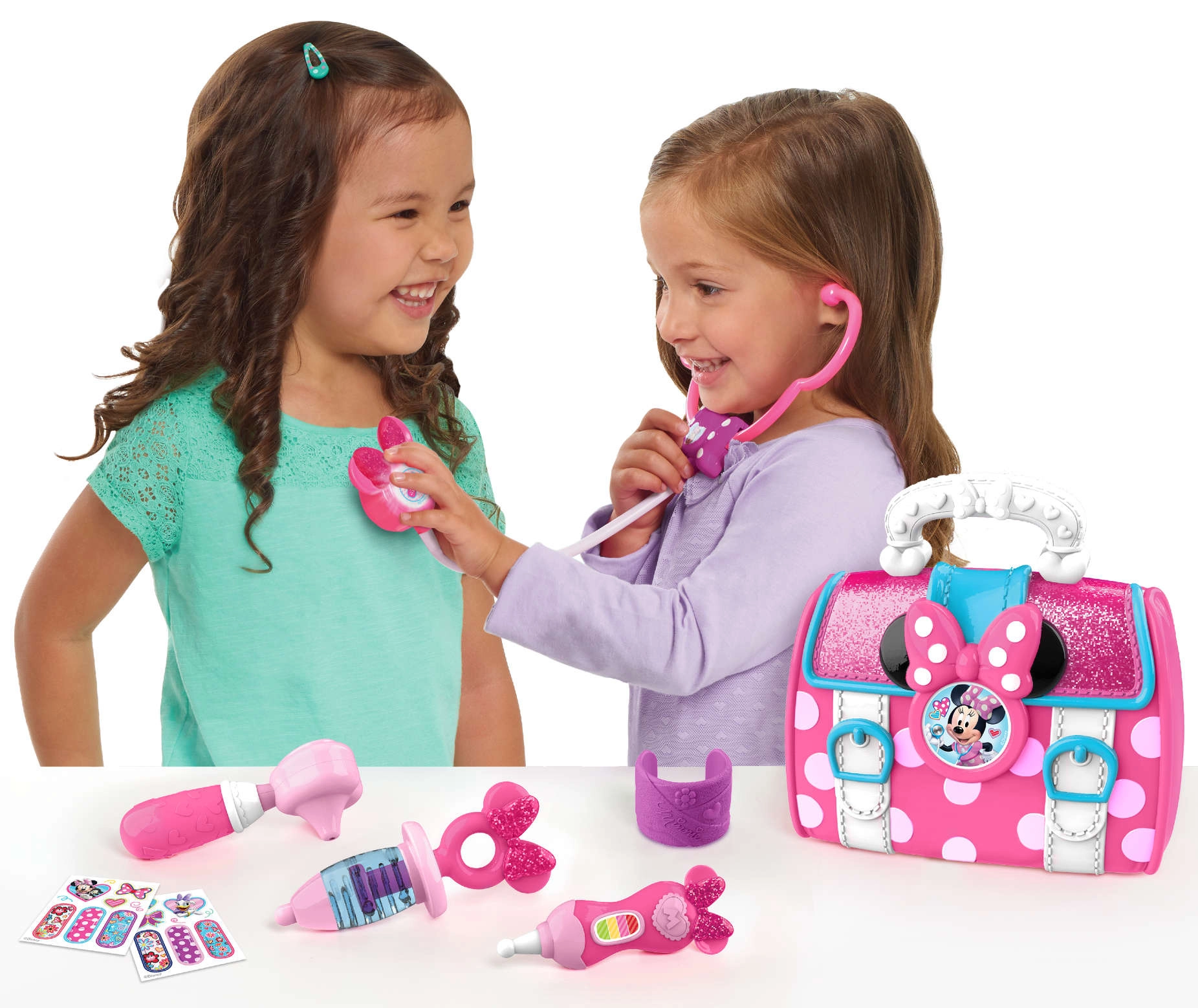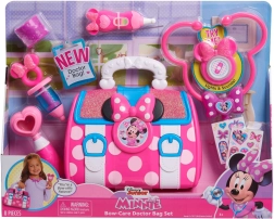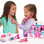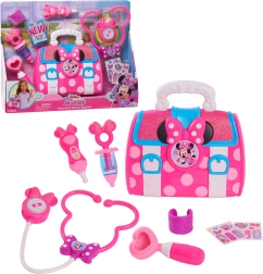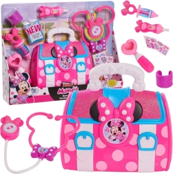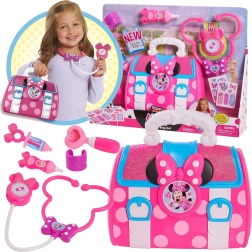 Zabawowy zestaw lekarski z motywem MINNIE MOUSE ucieszy wszystkich małych lekarzy. Zawiera 8 elementów, w tym świecący i dźwiękowy stetoskop, termometr oraz inne akcesoria. Praktyczna różowa lekarska torba utrzyma wszystko w porządku i wspiera kreatywną zabawę oraz naukę pomagania innym.