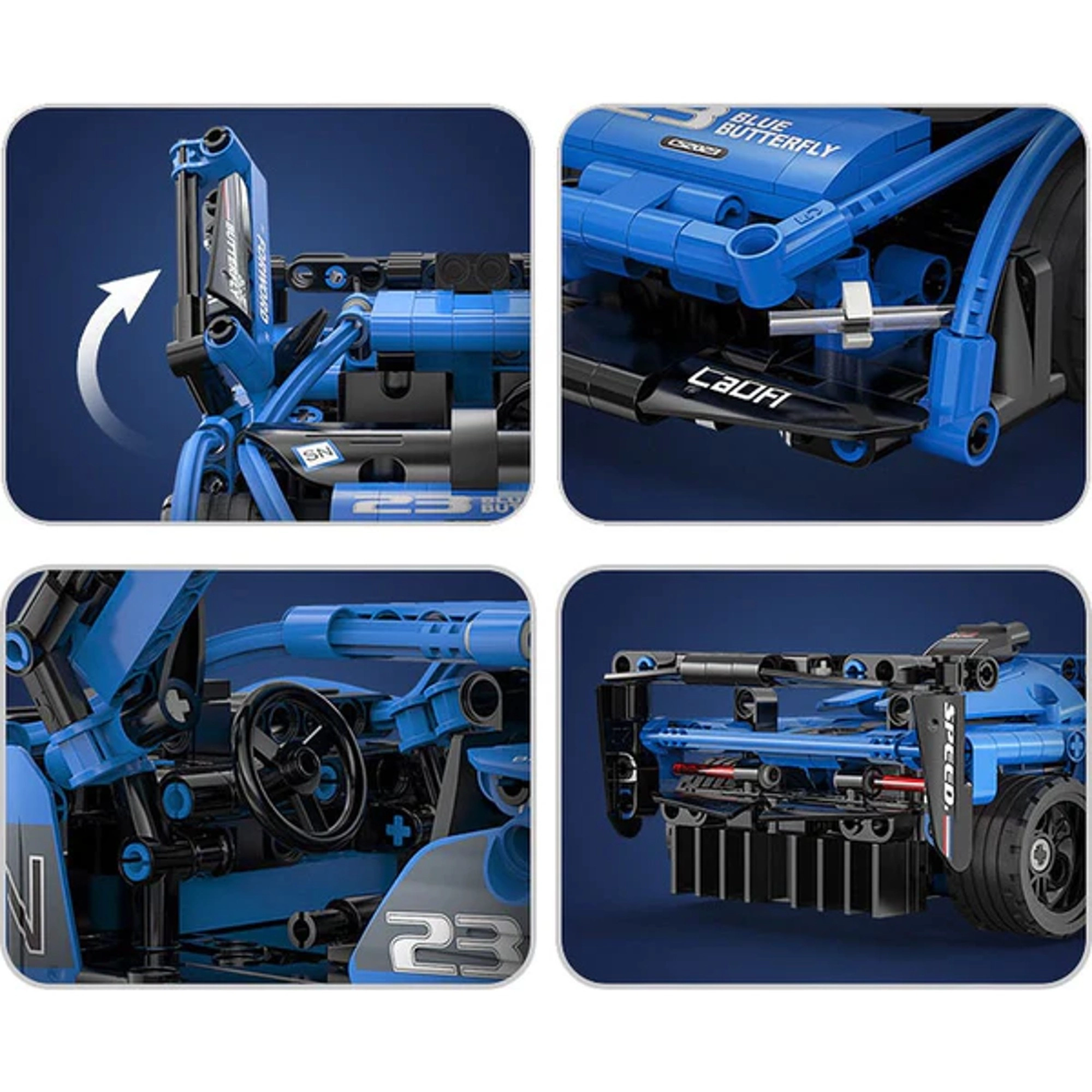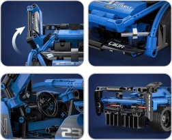 Model w eleganckim niebieskim kolorze z czarnymi akcentami oferuje otwierane drzwi, regulowany spojler i działającą kierownicę. Elementy są kompatybilne z innymi zestawami CADA, więc możesz rozbudowywać swoją kolekcję i tworzyć jeszcze większe konstrukcje. Opakowanie jest reprezentacyjne, idealne jako prezent dla dzieci od 6 lat i miłośników budowania.