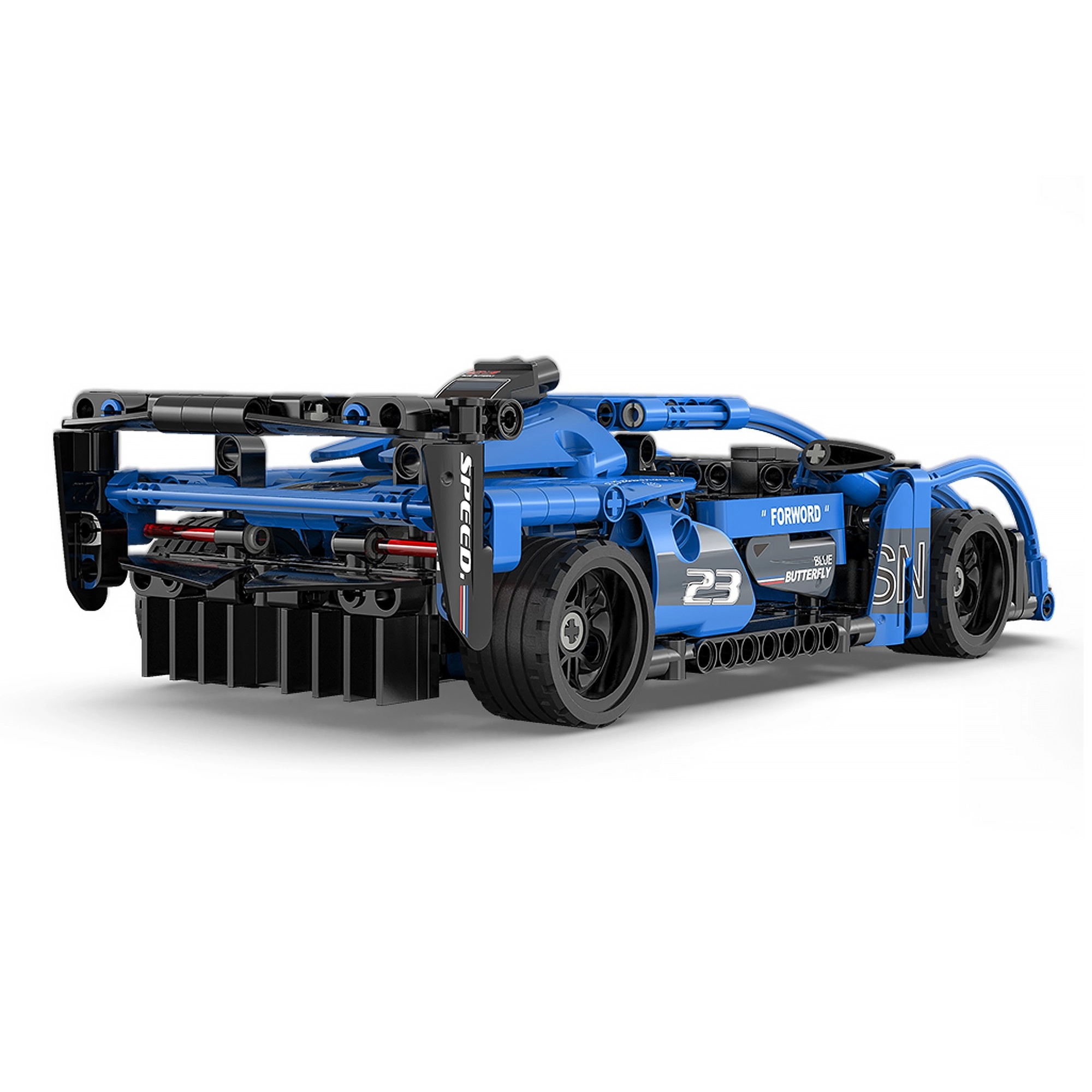 Klocki sportowego auta Shadow zaprojektowano z dbałością o szczegóły, które potęgują wrażenia z zabawy i budowania. Dzięki napędowi na wsteczne naciągnięcie wystarczy przeciągnąć auto do tyłu i puścić – ruszy do przodu i pokona ponad 10 metrów. Gumowe koła zapewniają dobrą przyczepność i płynną jazdę.