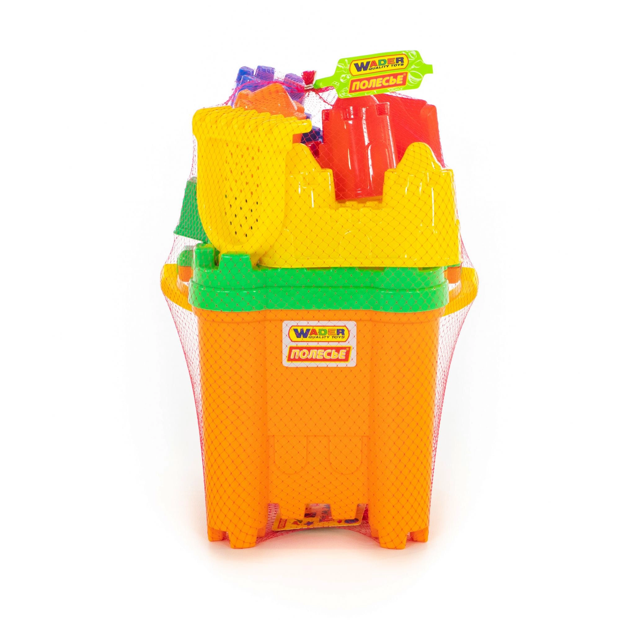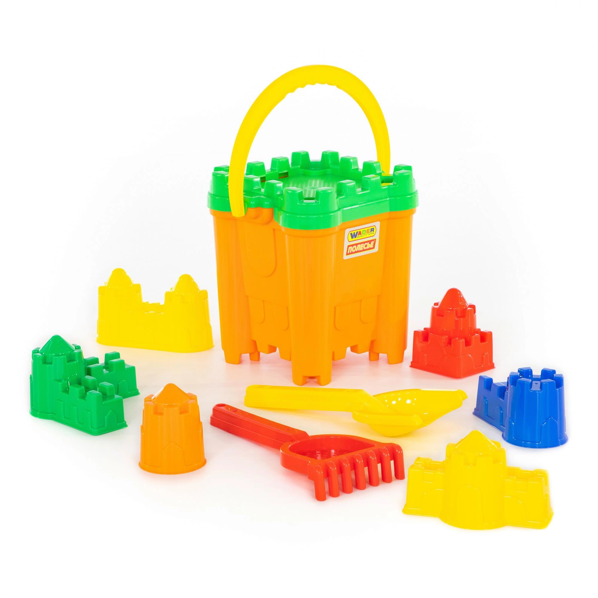 Zbuduj na plaży lub w piaskownicy najpiękniejszy zamek! Ten praktyczny zestaw zawiera wszystko, czego dzieci potrzebują do kreatywnej zabawy: pojemne wiaderko z sitem w kształcie wieży zamkowej, 6 różnych foremek z wieżami, łopatkę i grabki. Wysoka jakość wykonania z wytrzymałych tworzyw zapewnia długą żywotność i bezpieczną zabawę.