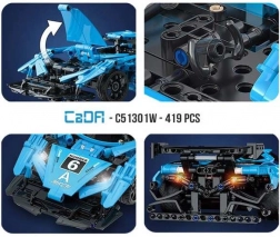 Model zaprojektowano z naciskiem na detale i funkcjonalność: znajdziesz tu otwieraną tylną pokrywę, obracaną kierownicę oraz regulowane siedzenie. Złożone auto ma wymiary około 39 × 13,6 × 8,2 cm i osiąga prędkość do 5,5 km/h. Elementy są kompatybilne z innymi zestawami CaDA, więc łatwo rozbudujesz swoją kolekcję.