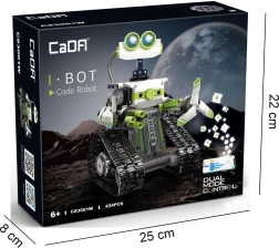 Zbuduj i ożyw własnego robota I.BOT marki CaDA. Dzięki 434 elementom i prostej aplikacji mobilnej zarówno dzieci, jak i dorośli będą się świetnie bawić podczas budowania i zabawy. Robot jeździ, obraca głową i kończynami, ma świecące LED-owe oczy, a jego broń obraca się o 360°. Możesz nim sterować pilotem 2,4 GHz lub przez aplikację Bluetooth z zasięgiem ponad 25 m.