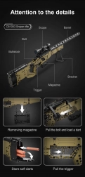Ten szczegółowy zestaw marki DOUBLE EAGLE/CADA to atrakcyjny projekt dla starszych dzieci i nastolatków. Złożysz imponujący model karabinu snajperskiego SNIPER RIFLE z wieloma ruchomymi częściami, w tym magazynkiem i celownikiem optycznym. Dzięki dołączonemu paskowi model jest łatwy do przenoszenia.