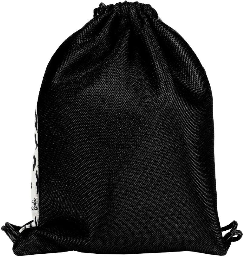 Stylowy gym worek dla dzieci i nastolatków marki PASO z motywem BARBIE w czarno-białym wydaniu. Oferuje lekką konstrukcję, pojemną komorę główną na sznurek, przednią kieszeń na zamek oraz usztywnione plecy z siateczką dla większego komfortu. Trwały materiał wodoodporny i mocne sznurki umożliwiają wygodne noszenie na plecach i na ramieniu.