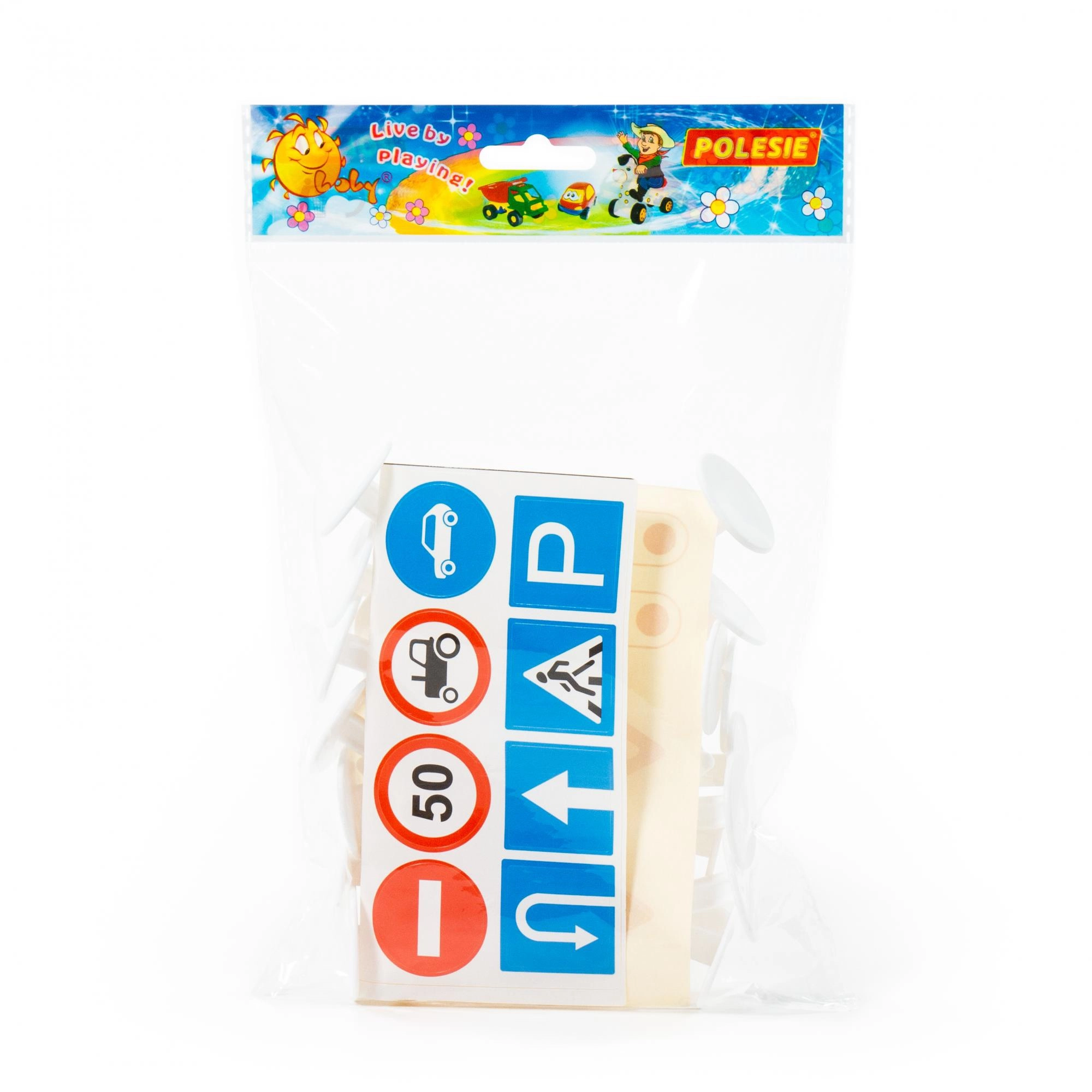 Opakowanie zawiera arkusz naklejek, dzięki którym łatwo stworzysz realistyczne oznakowanie drogowe według potrzeb.