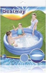 Dmuchany basen marki Bestway wykonany jest z wytrzymałego winylu i posiada trzy jednakowe, dmuchane pierścienie, które zapewniają stabilność i komfort. Dzięki pojemności 282 litrów (74 galony) oferuje wystarczająco dużo miejsca na dziecięce aktywności w ogrodzie.