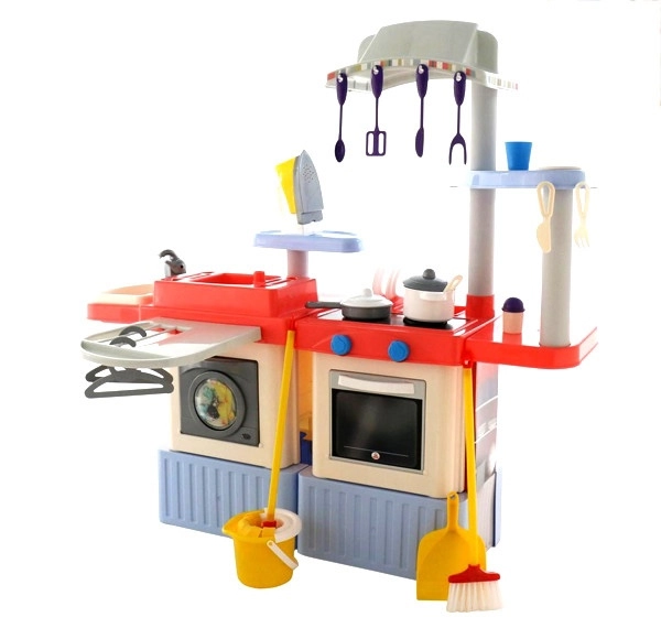 Dziecięca kuchnia z zestawem do prania i prasowania