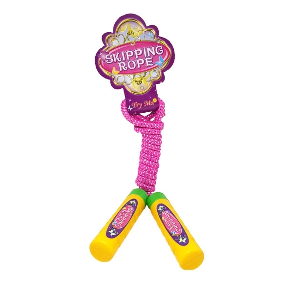 Rozruszaj dzieci w dobrym stylu! Ta kolorowa skakanka łączy wytrzymałą bawełnianą linę ze srebrną dekoracyjną nitką dla atrakcyjnego wyglądu i lepszej widoczności. Ergonomicznie ukształtowane plastikowe rączki dobrze leżą w dziecięcej dłoni i ułatwiają pewny chwyt podczas skakania.